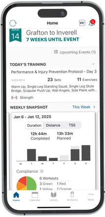 My coaching utilises TrainingPeaks to maximise your training effectiveness, providing seamless access to your plan via web browser and iOS/Android apps.